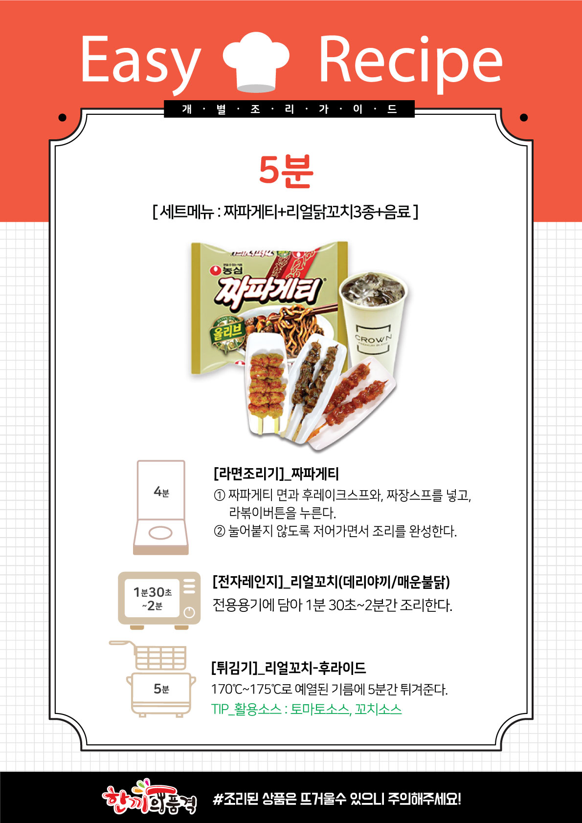 짜파게티+닭꼬치3종+음료 > 010레시피